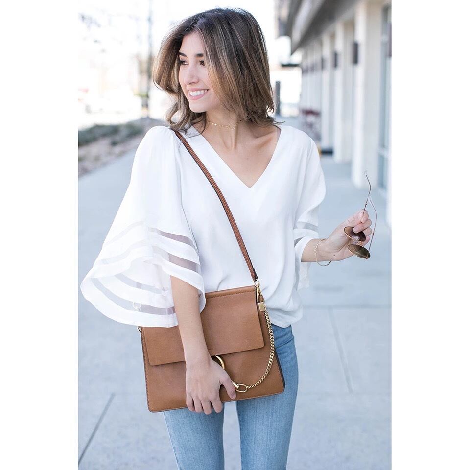 夏 夏先取り トップス シフォンブラウス フレア袖 メッシュシャツ Vネック