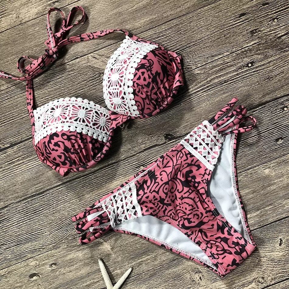 夏 水着 セクシー 可愛い ピンク レース プッシュアップ