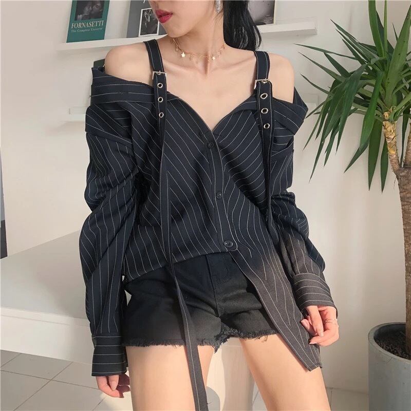 春 先取り レディース トップス ストライプ シャツ オフショル 長袖 | kandimart