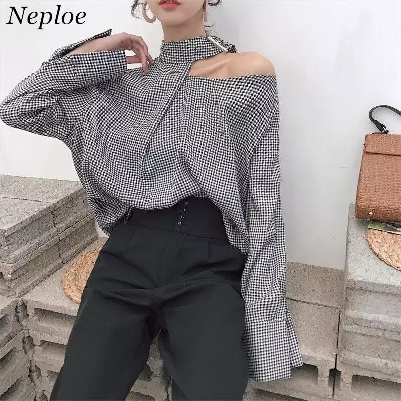 春 先取り トップス 長袖 格子柄 ブラウス 韓国