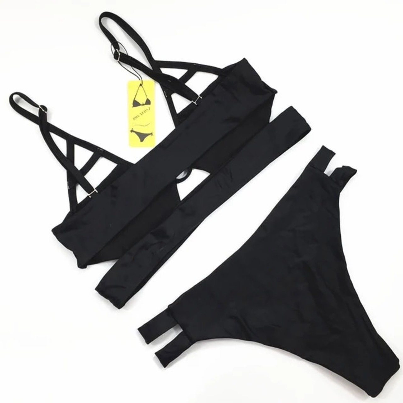 所々露出度があり、セクシーかつカッコイイタンキニビキニです。 カラー ブラック サイズ S、M、L、XL