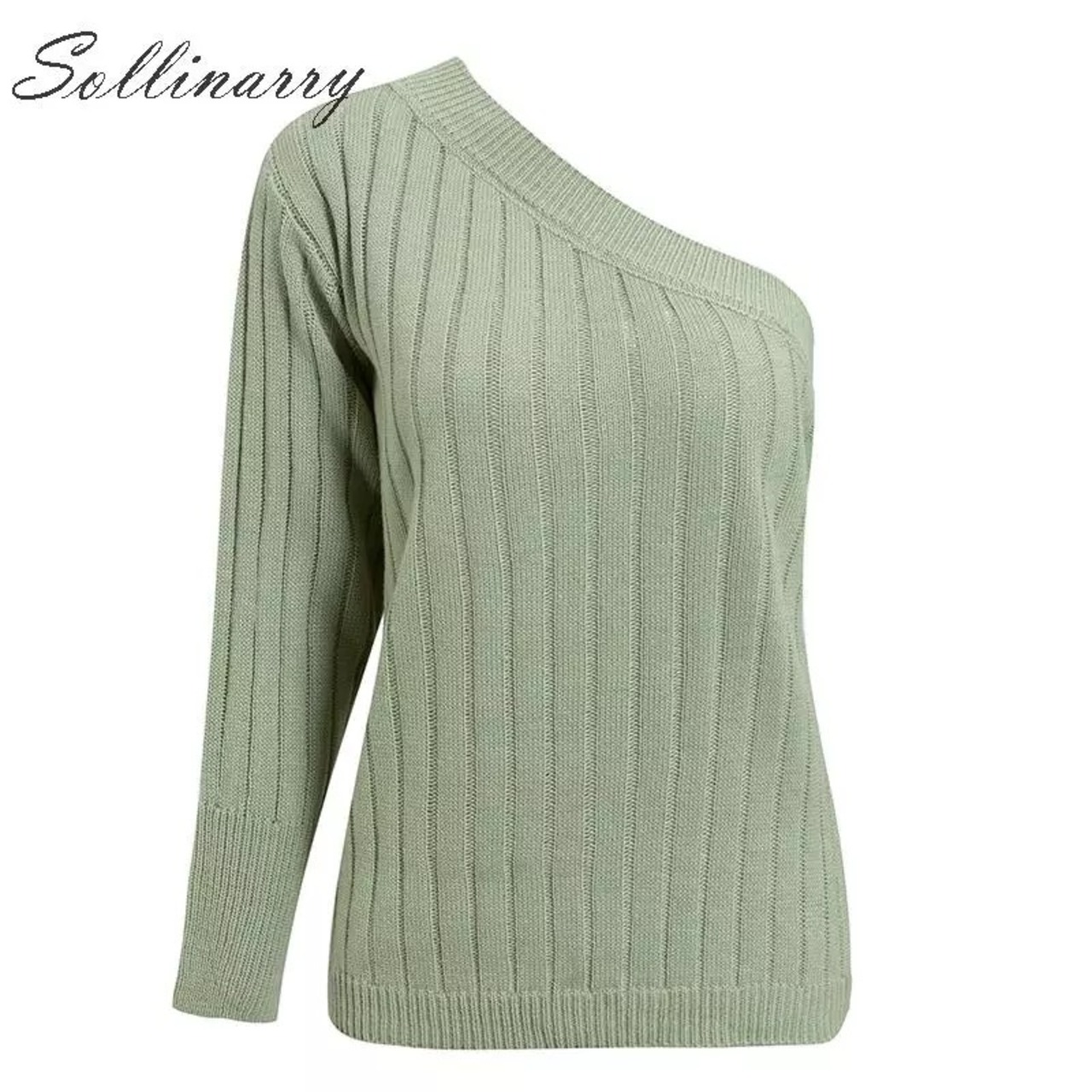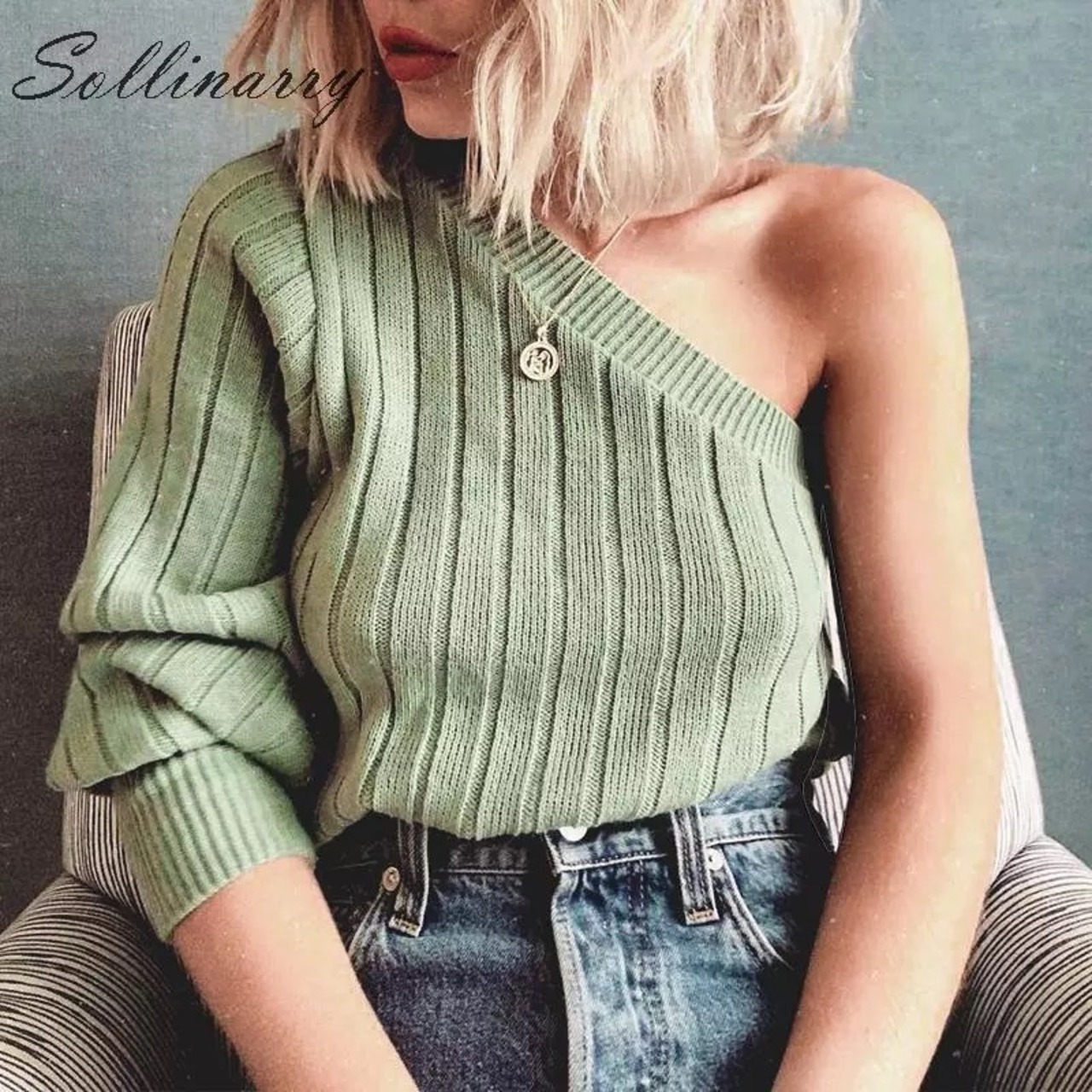 秋 先取り ワンショルダー ミントグリーン ニット セーター セクシー