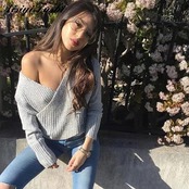 秋 先取り ワンショルダー ニット セーター セクシー オフショルダー | kandimart