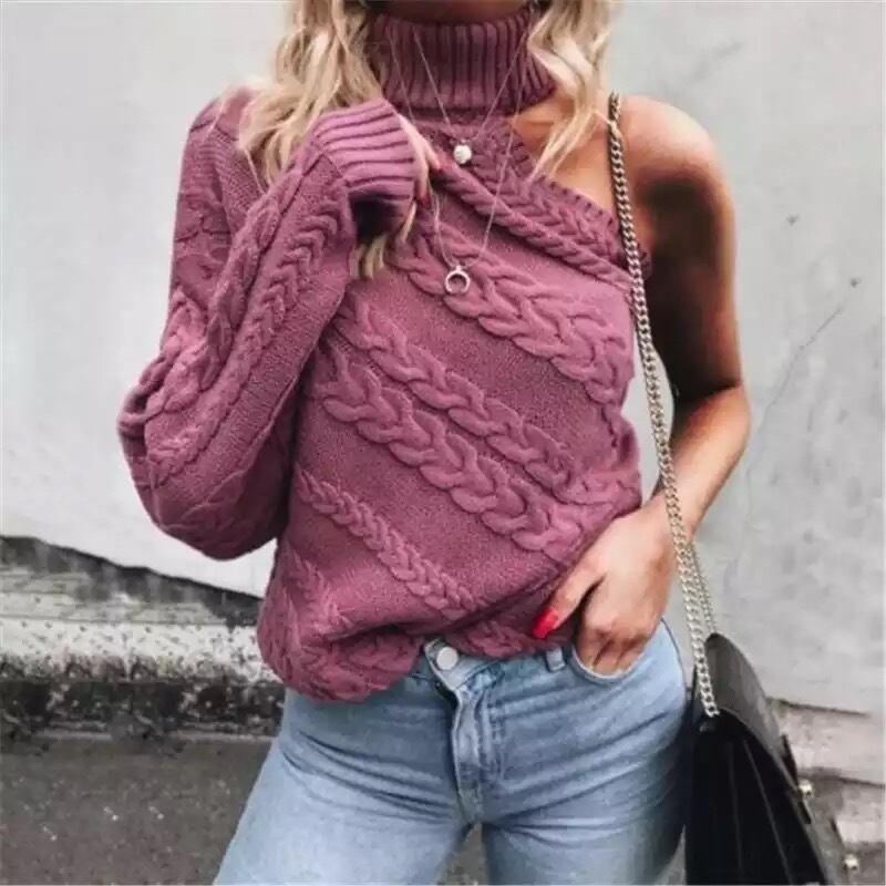 秋 先取り ニット プルオーバー タートルネック ワンショルダー | kandimart