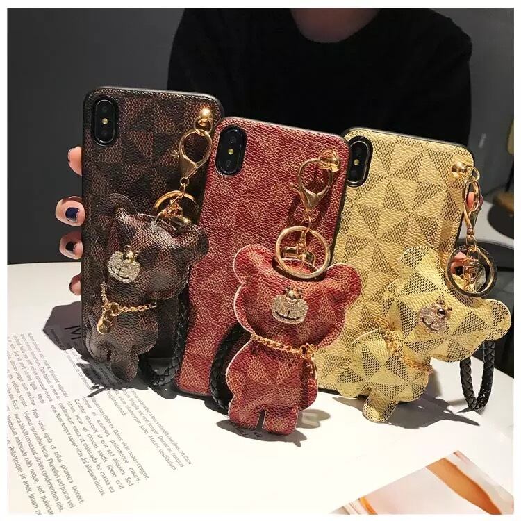iPhone11シリーズに対応したカバーもございます。高級感もありつつ、ストラップのクマがとても可愛いケースとなっています。